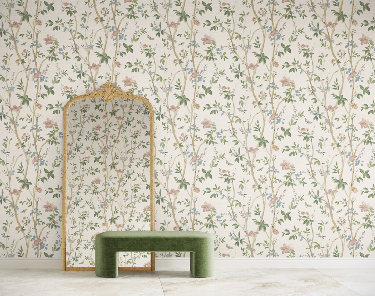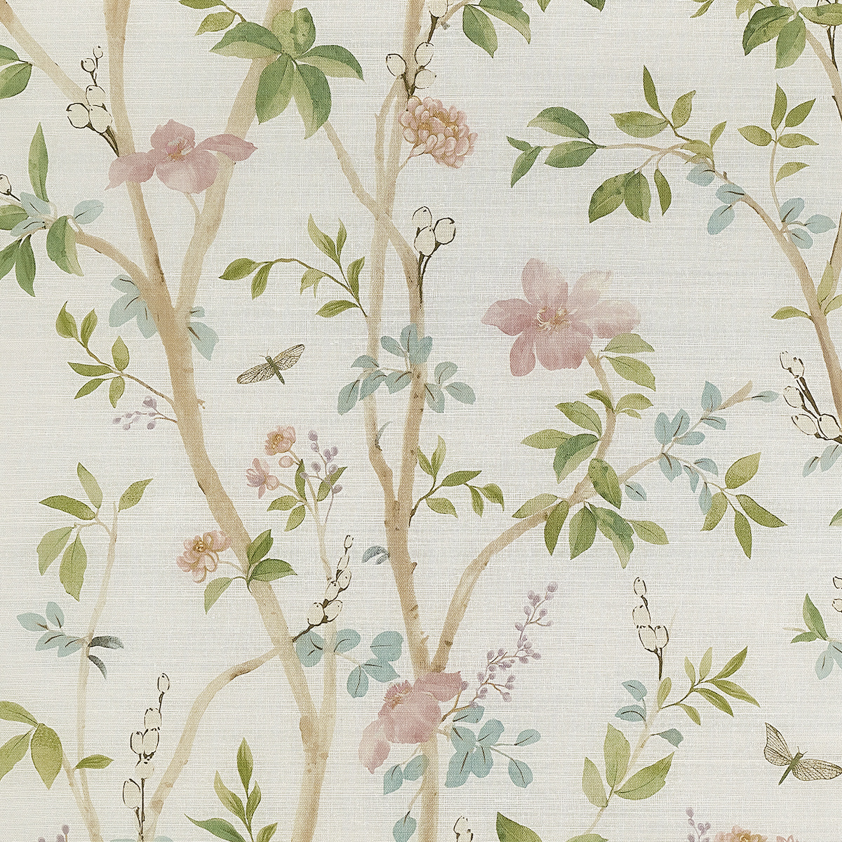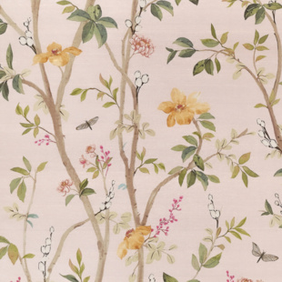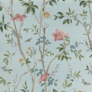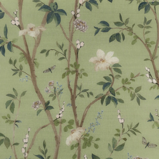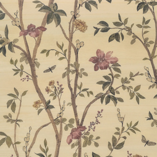 Climbing floral branches ascend with grace, as a vision of an elegant garden in full bloom. This painterly print wallcovering design features soft petals and leafy stems. This wallcovering may be printed on a variety of grounds and is made to order with the industry\'s shortest lead times. Utilizing sophisticated colorations, this collection can be fully customized with more colors and grounds through our PJ Mash Up® custom program.