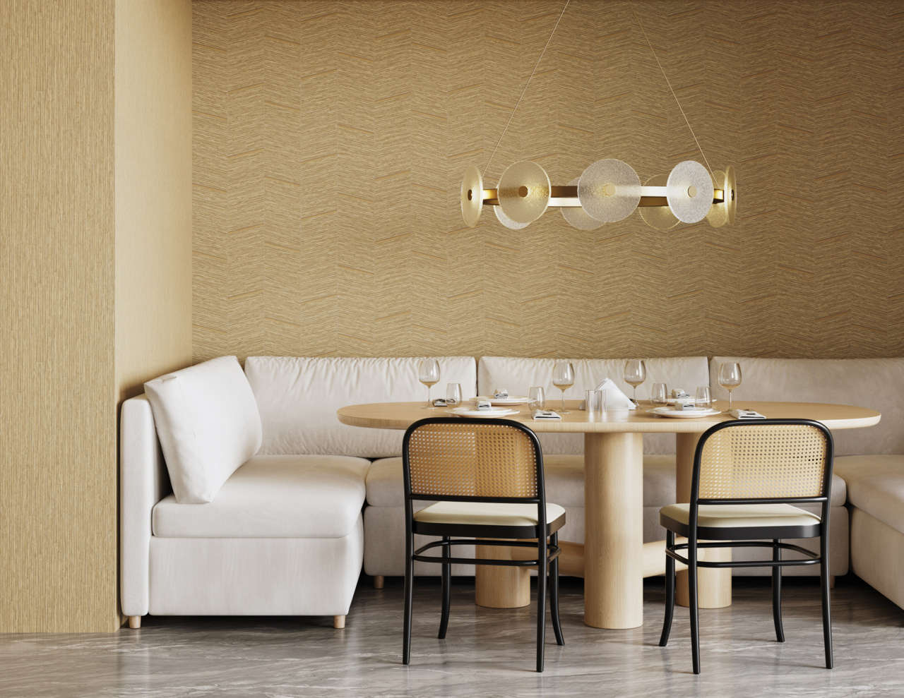 Inspired by a narrow husk, this luxurious chevron pattern is a Type II performance vinyl wallcovering with the look of a handcrafted natural. The geometric pattern features a hint of metallic. Our Type II performance vinyl wallcovering is expertly engineered for high traffic areas. This wallcovering is durable and low VOC making it perfectly suited for residential and commercial use. Luxury has never been so durable and affordable.